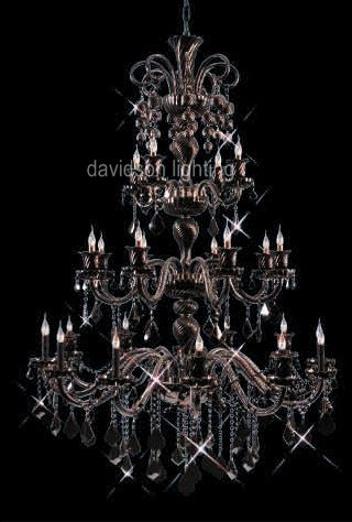 Chandelier 30% Lead Crystal Elizabeth Collection # DVR78304463B W44" x H63" / Frame color: Black Nickle or Polished Chrome, also available in 24k Gold Frame / Contains 4+8+12 candeliabra bulbs - included / Availability: in stock 2-3 days