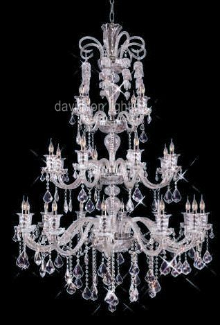 Chandelier 30% Lead Crystal Elizabeth Collection # DVR78304463C W44" x H63" / Frame color: Polished Chrome or Black Nickle and also available in 24k Gold Frame / Contains 4+8+12 candeliabra bulbs - included / Availability: in stock 2-3 days