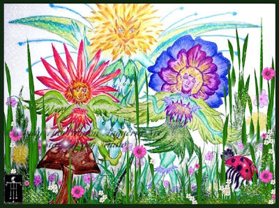Dancing Flower Spirit by Cindy Thorrington Haggerty 8"x10" Ceramic Art Tile with recessed hangers for tabletop or wall hanging purposes