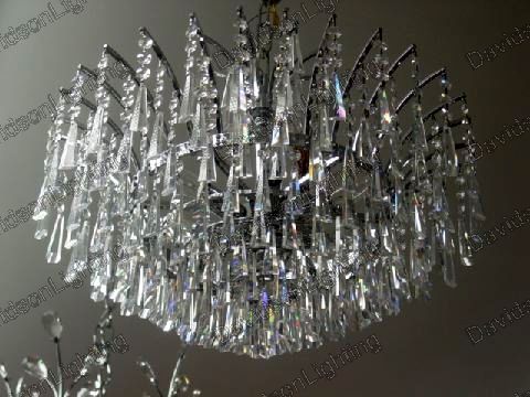 Swarovski Spectra Authentic Crystal Chandelier # D1188L8s / Dimentions: 19" x 16" / Frame color: polished chrome, also available in 24k gold frame / Contains 8x60w candeliabra bulbs - included / Availability: in stock 2-3 days