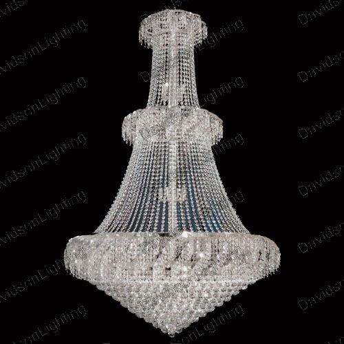 Chandelier 30% lead Crystal Belenus Collection # DVR0013666A / Dimentions: D 36" x H 66" / Frame color: polished chrome, also available in 24k gold frame / Contains 32x60w candeliabra bulbs - included / Availability: in stock 2-3 days