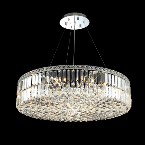 We offer high quality crystal chandeliers & lighting fixtures at low and affordable prices. We bring the European tradition into your home. High quality lighting fixtures with handmade or machine cut crystals are our main product. We offer the following exclusive lines of Venetian Murano, Swarovski crystals, Versailles, bohemian, custom made, and decorative lighting fixtures. Factory direct prices. D:32" H:7.5" Lights:12. Finish: Polished Chrome. As Shown: 30% Lead Crystal. Available: Swarovski Spectra & Swarovski Strass. Available in 24k gold and chrome frame.