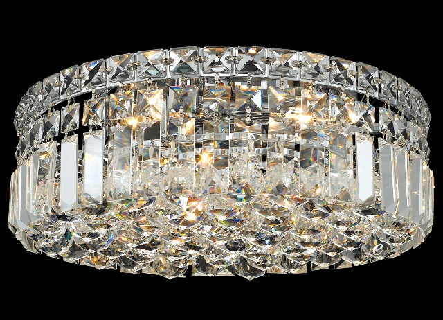 We offer high quality crystal chandeliers & lighting fixtures at low and affordable prices. We bring the European tradition into your home. High quality lighting fixtures with handmade or machine cut crystals are our main product. We offer the following exclusive lines of Venetian Murano, Swarovski crystals, Versailles, bohemian, custom made, and decorative lighting fixtures. Factory direct prices. D:14" H:5.5" Lights:4. Finish: Polished Chrome. As Shown: 30% Lead Crystal. Available: Swarovski Spectra & Swarovski Strass. Available in 24k gold and chrome frame.