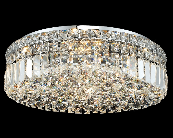 We offer high quality crystal chandeliers & lighting fixtures at low and affordable prices. We bring the European tradition into your home. High quality lighting fixtures with handmade or machine cut crystals are our main product. We offer the following exclusive lines of Venetian Murano, Swarovski crystals, Versailles, bohemian, custom made, and decorative lighting fixtures. Factory direct prices. D:20" H:5.5" Lights:6. Finish: Polished Chrome. As Shown: 30% Lead Crystal. Available: Swarovski Spectra & Swarovski Strass. Available in 24k gold and chrome frame.