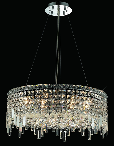 We offer high quality crystal chandeliers & lighting fixtures at low and affordable prices. We bring the European tradition into your home. High quality lighting fixtures with handmade or machine cut crystals are our main product. We offer the following exclusive lines of Venetian Murano, Swarovski crystals, Versailles, bohemian, custom made, and decorative lighting fixtures. Factory direct prices. D:24" H:10.5" Lights:12. Finish: Polished Chrome. As Shown: 30% Lead Crystal. Available: Swarovski Spectra & Swarovski Strass. Available in 24k gold and chrome frame.