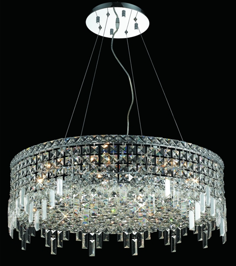We offer high quality crystal chandeliers & lighting fixtures at low and affordable prices. We bring the European tradition into your home. High quality lighting fixtures with handmade or machine cut crystals are our main product. We offer the following exclusive lines of Venetian Murano, Swarovski crystals, Versailles, bohemian, custom made, and decorative lighting fixtures. Factory direct prices. D:28" H:10.5" Lights:12. Finish: Polished Chrome. As Shown: 30% Lead Crystal. Available: Swarovski Spectra & Swarovski Strass. Available in 24k gold and chrome frame.