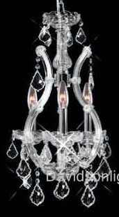 Chandelier 30% lead Crystal Maria Theresa Collection # DVR280012A / Dimentions: D 12" x H 22" / Frame color: polished chrome, also available in 24k gold frame / Contains 4x60w candeliabra bulbs - included / Availability: in stock 2-3 days