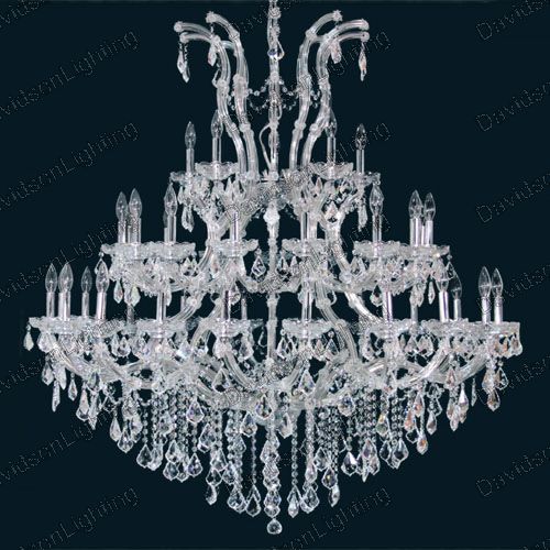 Chandelier 30% lead Crystal Maria Theresa Collection # DVR280052A / Dimentions: D 52" x H 54" / Frame color: polished chrome, also available in 24k gold frame / Contains 41x60w candeliabra bulbs - included / Availability: in stock 2-3 days
