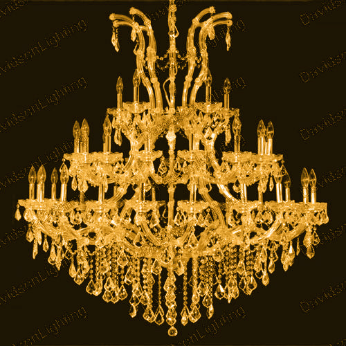 Chandelier 30% lead Crystal Maria Theresa Collection # DVR280052AG / Dimentions: D 52" x H 54" / Frame color: polished chrome, also available in 24k gold frame / Contains 41x60w candeliabra bulbs - included / Availability: in stock 2-3 days