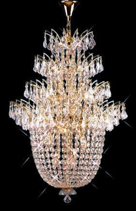 We offer high quality crystal chandeliers & lighting fixtures at low and affordable prices. We bring the European tradition into your home. High quality lighting fixtures with handmade or machine cut crystals are our main product. We offer the following exclusive lines of Venetian Murano, Swarovski crystals, Versailles, bohemian, custom made, and decorative lighting fixtures. Factory direct prices. D: 27" H:38" Lights: 18. D:31" H:50" Lights: 25. Frame: 24K Gold Plated. or Polished Chrome. As Show : 30% Lead Crystal. Also Available: . Swarovski Spectra . Swarovski Spectra. Available in 24k gold and chrome frame.