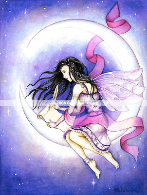 Crescent Moon Fairy by Gretchen Raisch-Baskin 8"x10" Ceramic Art Tile with recessed hangers for tabletop or wall hanging purposes