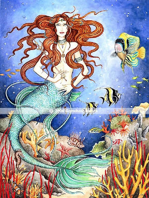 Ceramic Art Tile > Boticelli Mermaid by Gretchen Raisch-Baskin 8"x10" Ceramic Art Tile with recessed hangers for tabletop or wall hanging purposes