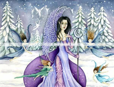 Ceramic Art Tile > Snow Queen by Gretchen Raisch-Baskin 8"x10" Ceramic Art Tile with recessed hangers for tabletop or wall hanging purposes