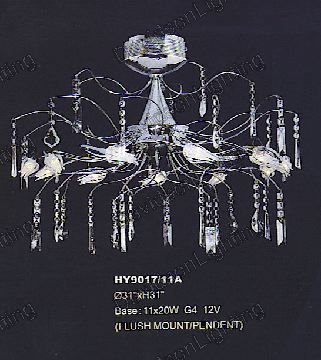 Chandelier 30% lead Crystal # HY9017L11a / Dimentions: w30" x h31" / Frame color: polished chrome, also available in 24k gold frame / Contains 11x60w candeliabra bulbs - included / Availability: in stock 2-3 days