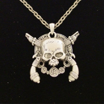 J020 Skull and Crossed Pistols Necklace All Jewelry Packages with Custom Back Card & OPP Bag Lead Free Alloy