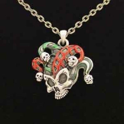 J025 Jester Skull Necklace All Jewelry Packages with Custom Back Card & OPP Bag Lead Free Alloy