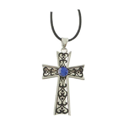J089 Cross w/Blue Gemstone All Jewelry Packages with Custom Back Card & OPP Bag Lead Free Alloy