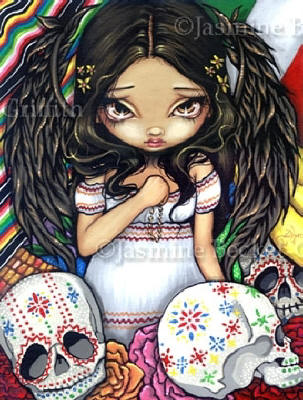 Ceramic Art Tile > Angel De Los Muertos by Jasmine Becket Griffith 8"x10" Ceramic Art Tile with recessed hangers for tabletop or wall hanging purposes