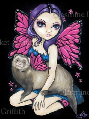 Ceramic Art Tile > Ferret With Butterfly Wings by Jasmine Becket Griffith 8"x10" Ceramic Art Tile with recessed hangers for tabletop or wall hanging purposes
