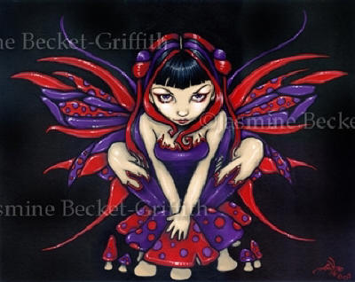 Ceramic Art Tile > Polka Dot Mushroom Fairy by Jasmine Becket Griffith 8"x10" Ceramic Art Tile with recessed hangers for tabletop or wall hanging purposes