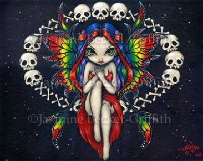 Rainbow of Bones by Jasmine Becket Griffith 8"x10" Ceramic Art Tile with recessed hangers for tabletop or wall hanging purposes