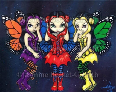 Three Wise Faeries by Jasmine Becket Griffith 8"x10" Ceramic Art Tile with recessed hangers for tabletop or wall hanging purposes