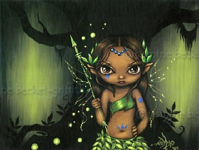Tribal Fairy by Jasmine Becket Griffith 8"x10" Ceramic Art Tile with recessed hangers for tabletop or wall hanging purposes