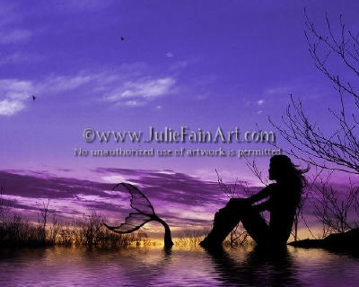 Ceramic Art Tile > Mermaid Sunset II by Julie Fain 8"x10" Ceramic Art Tile with recessed hangers for tabletop or wall hanging purposes