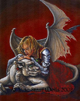 Ceramic Art Tile > Gargoyle Guardian by Jane Starr Weils 8"x10" Ceramic Art Tile with recessed hangers for tabletop or wall hanging purposes