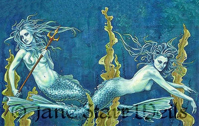 Ceramic Art Tile > Mermaids by Jane Starr Weils 8"x10" Ceramic Art Tile with recessed hangers for tabletop or wall hanging purposes