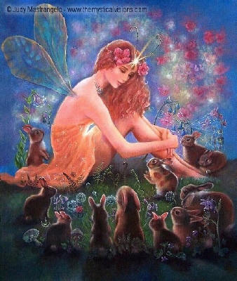 Ceramic Art Tile > Fairy and the Velveteen Rabbit by Judy Mastrangelo 8"x10" Ceramic Art Tile with recessed hangers for tabletop or wall hanging purposes