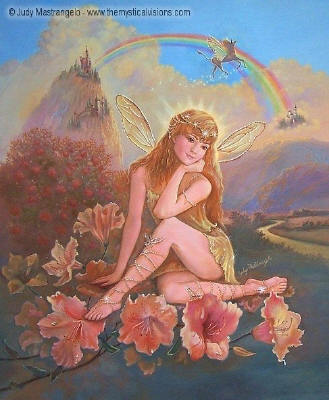 Ceramic Art Tile > Fairy of Fantasy by Judy Mastrangelo 8"x10" Ceramic Art Tile with recessed hangers for tabletop or wall hanging purposes