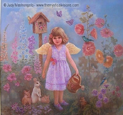 Gardening Angel by Judy Mastrangelo 8"x10" Ceramic Art Tile with recessed hangers for tabletop or wall hanging purposes