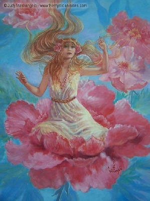 Ceramic Art Tile > Peony Fairy by Judy Mastrangelo 8"x10" Ceramic Art Tile with recessed hangers for tabletop or wall hanging purposes