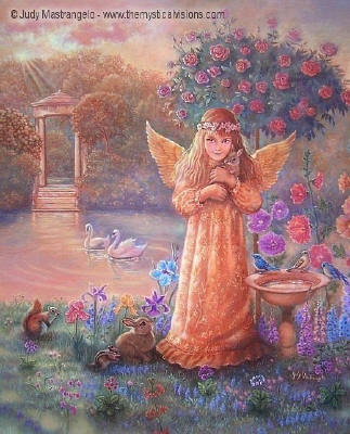 Ceramic Art Tile > Protecting Angel by Judy Mastrangelo 8"x10" Ceramic Art Tile with recessed hangers for tabletop or wall hanging purposes