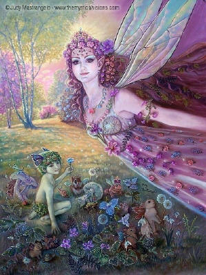 Titania's Flight by Judy Mastrangelo 8"x10" Ceramic Art Tile with recessed hangers for tabletop or wall hanging purposes