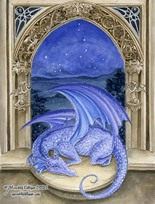 Ceramic Art Tile > Dragon of Night by Meredith Dillman 8"x10" Ceramic Art Tile with recessed hangers for tabletop or wall hanging purposes