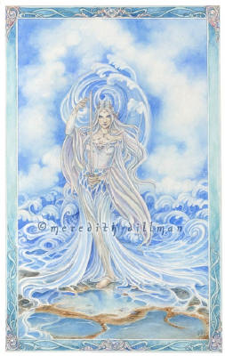 Ceramic Art Tile > Lady of the Lake Guinevere by Meredith Dillman 8"x10" Ceramic Art Tile with recessed hangers for tabletop or wall hanging purposes