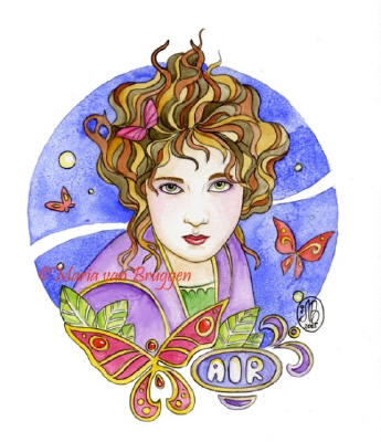 Ceramic Art Tile > Four Elements - Air by Maria Van Bruggen 8"x10" Ceramic Art Tile with recessed hangers for tabletop or wall hanging purposes