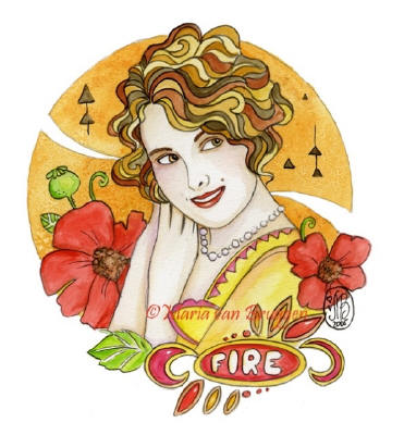 Four Elements - Fire by Maria Van Bruggen 8"x10" Ceramic Art Tile with recessed hangers for tabletop or wall hanging purposes