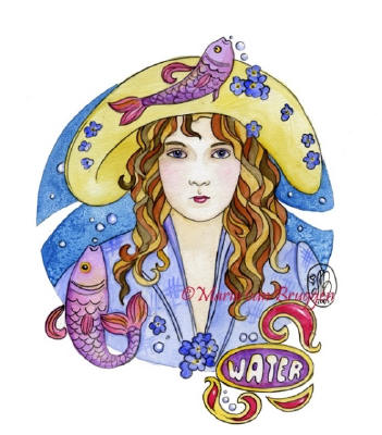 Ceramic Art Tile > Four Elements - Water by Maria Van Bruggen 8"x10" Ceramic Art Tile with recessed hangers for tabletop or wall hanging purposes