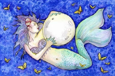 Ceramic Art Tile > Holding The Moon by Maria Van Bruggen 8"x10" Ceramic Art Tile with recessed hangers for tabletop or wall hanging purposes