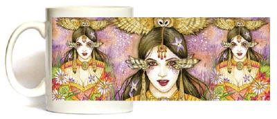 Owl Goddess Mug by Artist Maria Van Bruggen 11oz Coffee Mugs Microwave and Dishwasher Safe