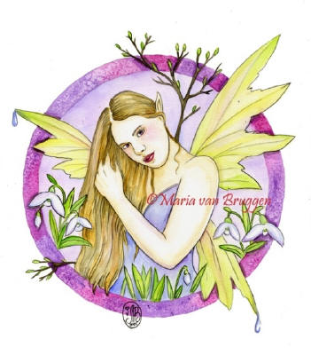 Ceramic Art Tile > Four Seasons - Spring by Maria Van Bruggen 8"x10" Ceramic Art Tile with recessed hangers for tabletop or wall hanging purposes