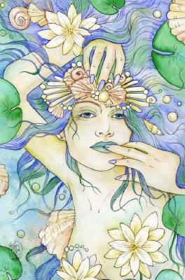 Ceramic Art Tile > Siren Dream by Maria Van Bruggen 8"x10" Ceramic Art Tile with recessed hangers for tabletop or wall hanging purposes