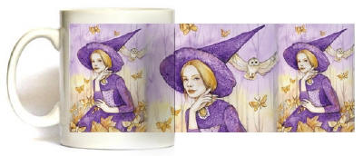 Art Mug > Autumn Witch Mug by Artist Maria Van Bruggen 11oz Coffee Mugs Microwave and Dishwasher Safe