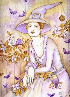 Ceramic Art Tile > Spring Witch by Maria Van Bruggen 8"x10" Ceramic Art Tile with recessed hangers for tabletop or wall hanging purposes