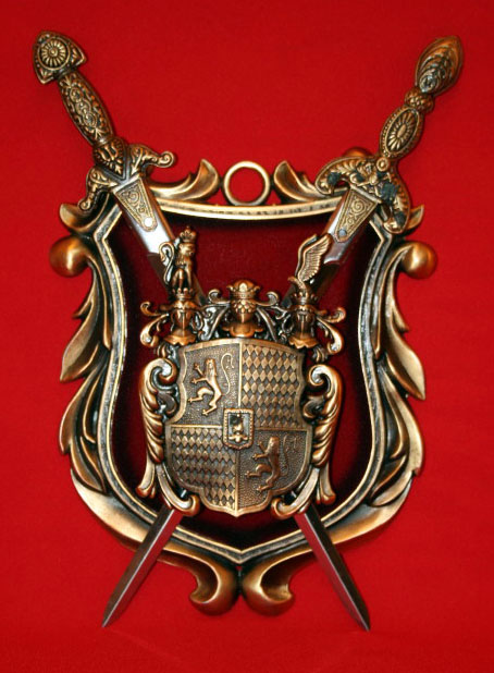 Beautiful Hand Made Bronze Portugal Old Fashion Coat of Arms Bearings Shield Sword