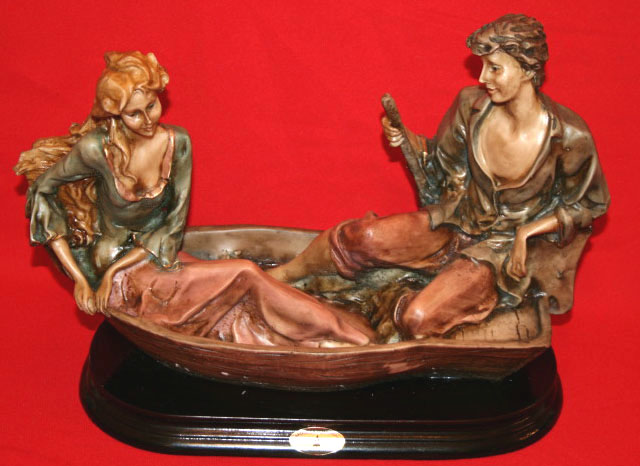 Beautiful Hand Made Hand Painted Portugal Man and Woman in Boat Figurine