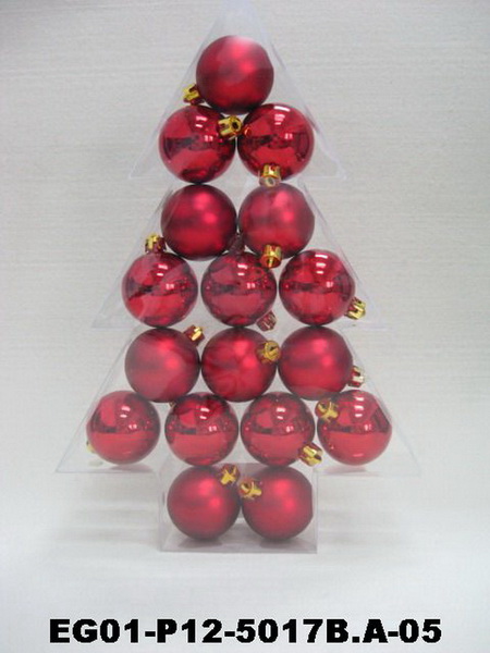 Christmas Items > set of 17pc 2" Christmas ornament Red SHINY MATT BALL IN PVC TREE Package